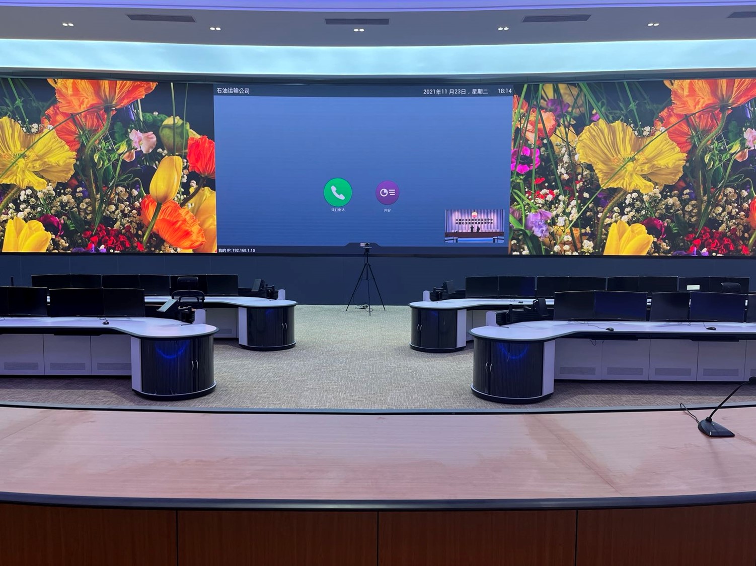 中國(guó)石油運(yùn)輸公司調(diào)度中心項(xiàng)目位于北京順義和新疆烏魯木齊兩地,兩地調(diào)度中心各建1套1.56mm的LED監(jiān)控大屏,并重點(diǎn)對(duì)兩地視頻會(huì)議功能進(jìn)行升級(jí),由原來模擬視頻會(huì)議終端升級(jí)為高清終端,實(shí)現(xiàn)雙路高清攝像機(jī)信號(hào)的實(shí)時(shí)切換及雙流顯示。保證兩地調(diào)度中心會(huì)場(chǎng)互聯(lián)互通,實(shí)現(xiàn)視頻交流,通過集團(tuán)M